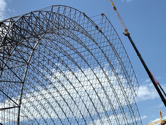(2)网架加工前应对现场尺寸进行复测,确认无误后方可进行加工、安装;网架制作、运输、安装应遵守《空间网格结构技术规程》JGJ7-2010、《钢网架玉溪螺栓球节点》JG/T 10-2009、《钢网架玉溪螺栓球节点用高强度螺栓》 GB/T 16939-2016、《玉溪钢结构玉溪工程玉溪施工规范》 GB50755-2012、《玉溪钢结构玉溪工程玉溪施工质量验收标准》 GB50205-2020。